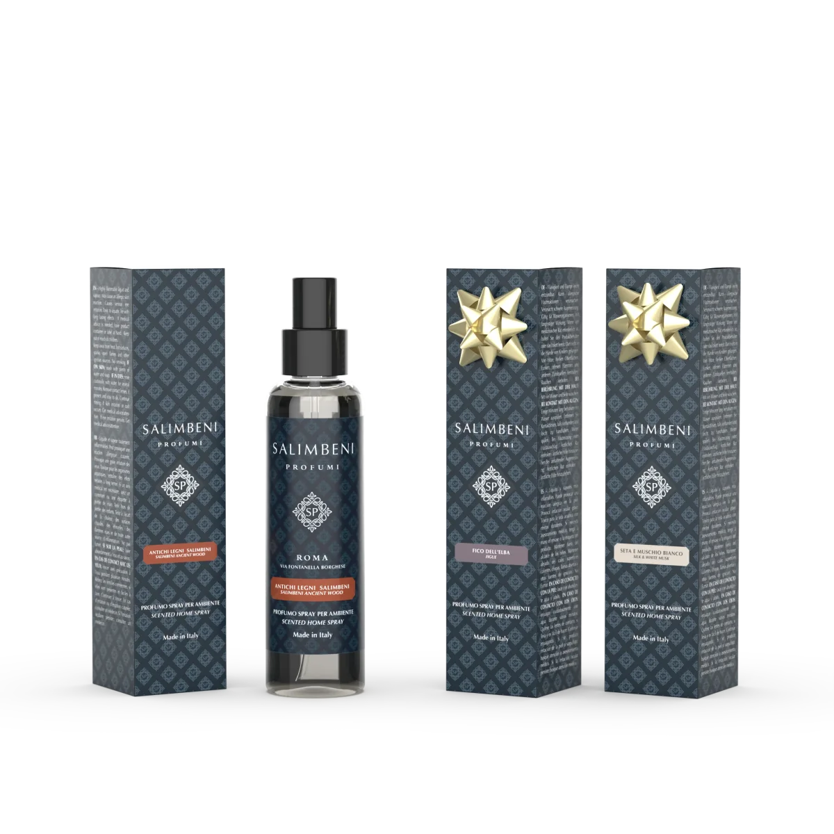 Spray per Ambienti 150 ml Antichi Legni Salimbeni + Spray per Ambienti 150 ml Fico dell’Elba in PROVA OMAGGIO + Spray per Ambienti 150 ml Seta e Muschio Bianco in PROVA OMAGGIO
