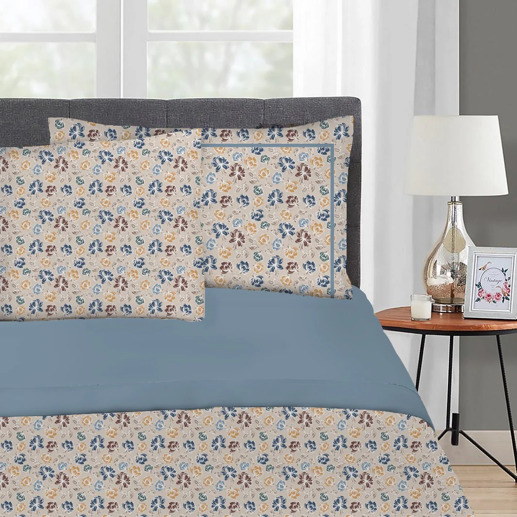 Questo completo letto si distingue per una delicata fantasia floreale che regala un tocco romantico e raffinato. Le federe con tre volani e l’angolo maxi garantiscono praticità e stile, rendendo il letto una vera protagonista della stanza.