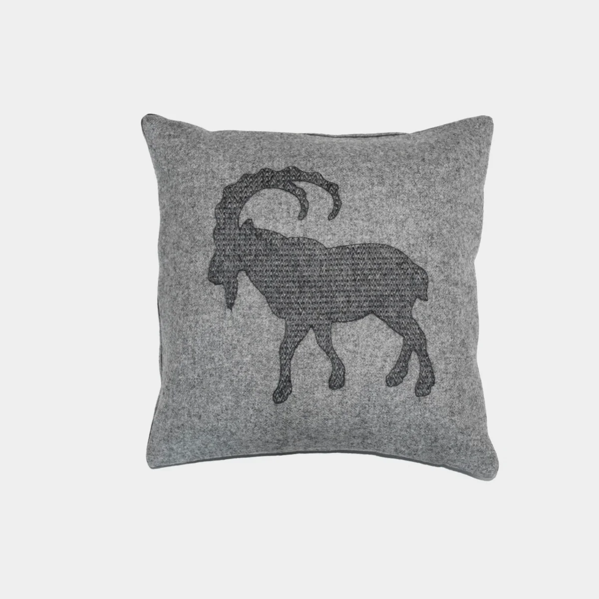 Cuscino lana melange decoro cuore applicazione in pelliccia