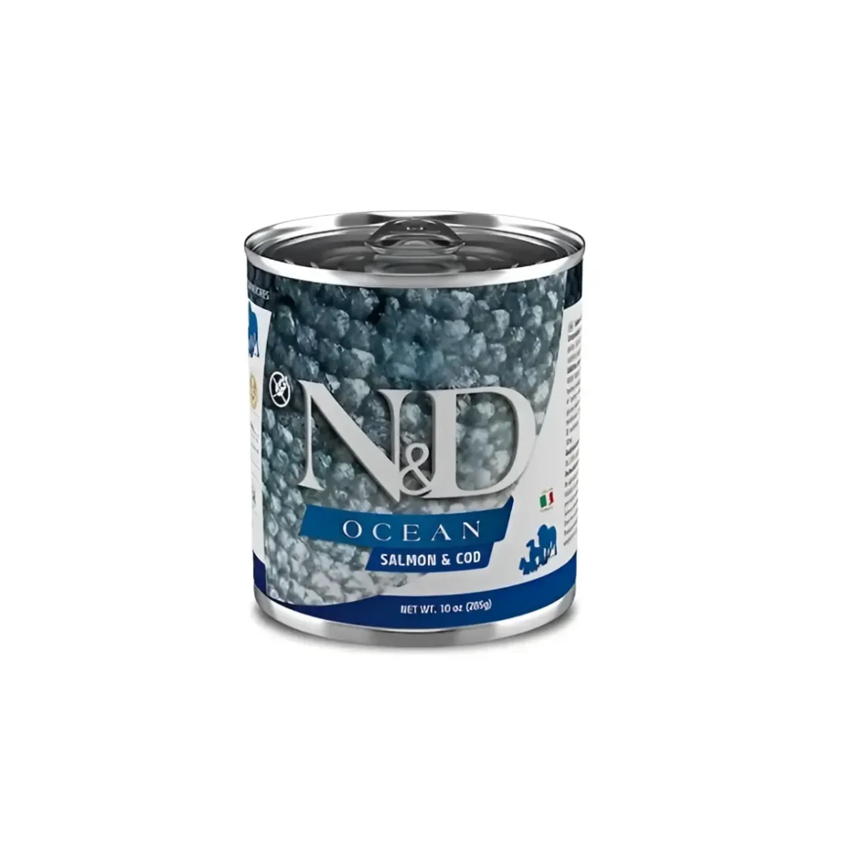 La linea di alimenti secchi N&D Ocean è disponibile in due formati: Mini e Medium&Maxi, con dimensioni delle crocchette differenti per meglio adattarsi alle esigenze di masticazione del tuo cane. La linea di alimenti umidi completi N&D Ocean, è proposta nella sua versione all breed da 285g e Mini, con tagli più piccoli, nelle comode lattine da 140g. Le lattine usate da Farmina sono completamente riciclabili, senza BPA e con etichette in carta proveniente da foreste gestite in modo responsabile.