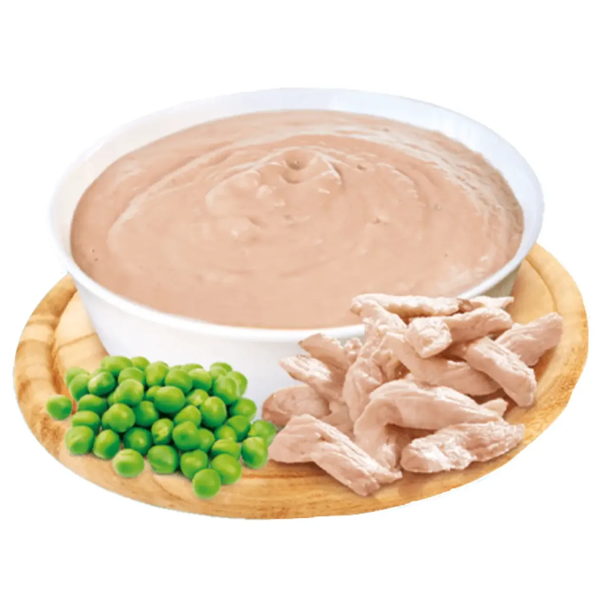 Gustosa crema realizzata con pregiato petto di pollo e piselli, ideale anche per gatti con problemi di masticazione.