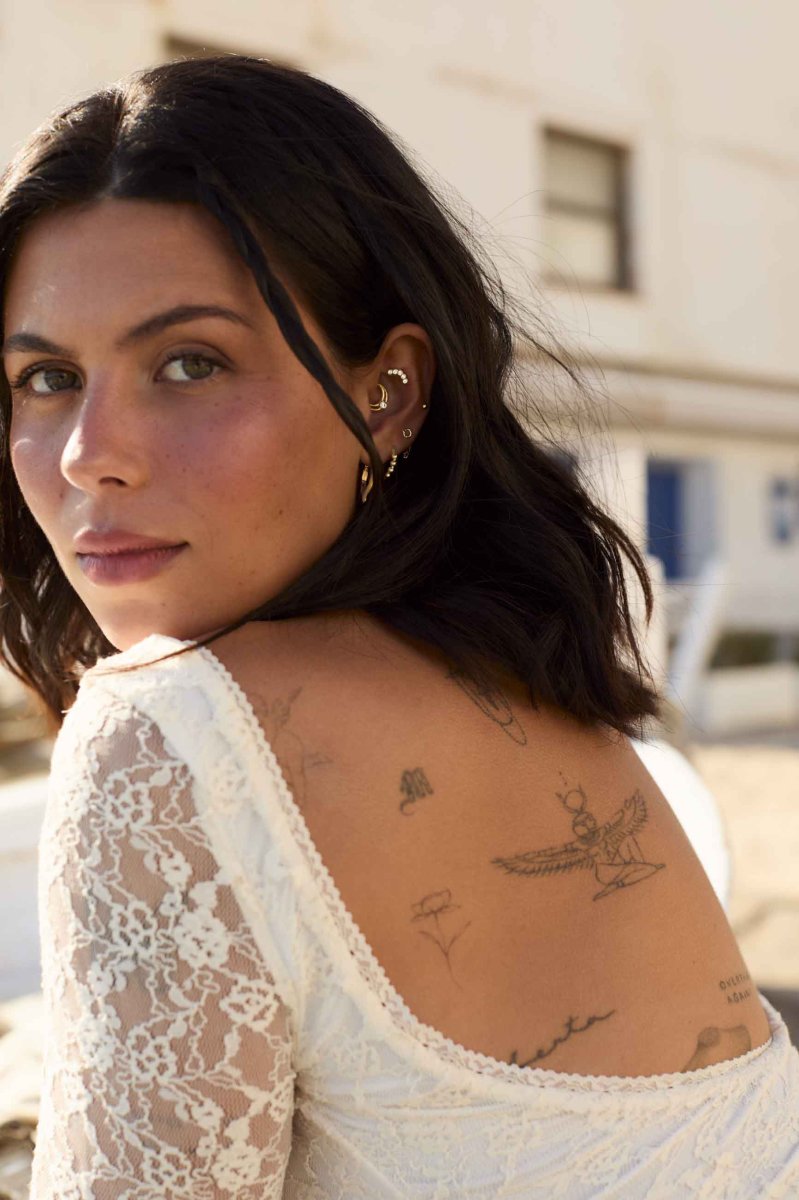 Este modelo es multiposición, perfecto para llevar tanto en Daith como en Hélix u otras zonas de aro. Ideal para quienes buscan flexibilidad, estilo y un toque dorado de energía positiva en sus combinaciones de piercing.