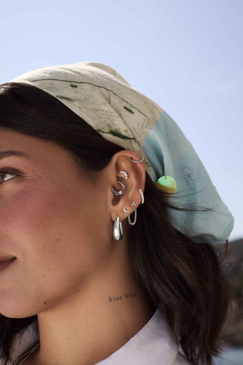 Gracias a su tamaño y forma, el Taron es multiposición, pudiendo colocarse tanto en el Daith, septum, Hélix o incluso en otras perforaciones tipo aro. Su acabado en plata aporta versatilidad y lo convierte en una pieza ideal para completar cualquier conjunto de oreja con un toque sofisticado y místico.