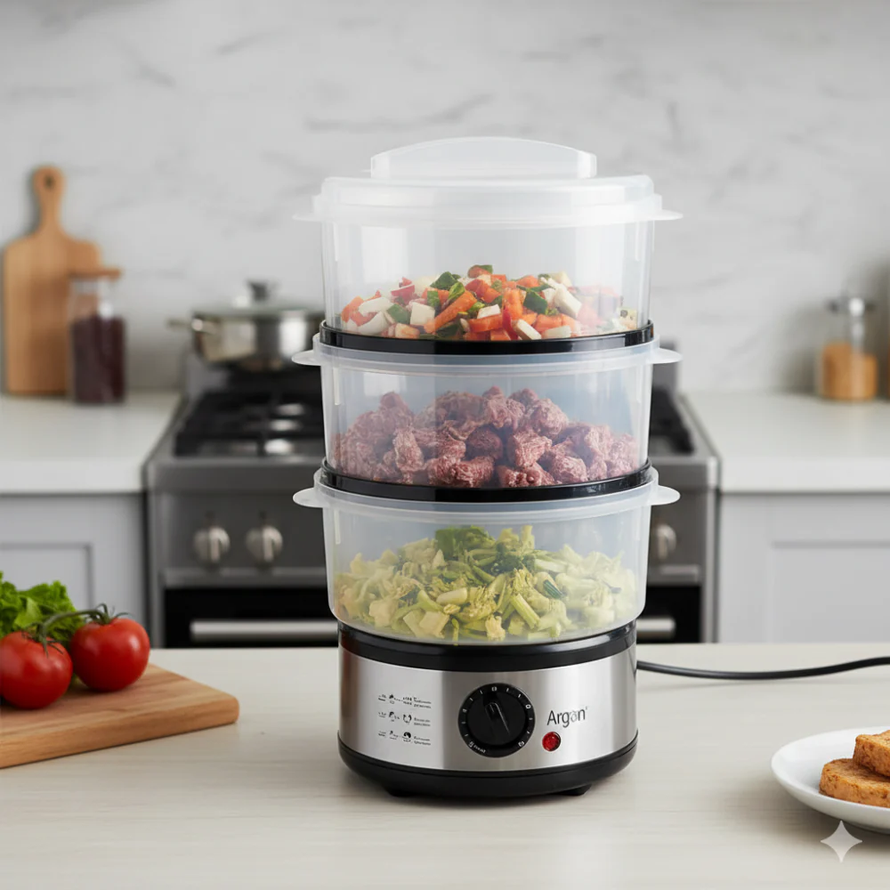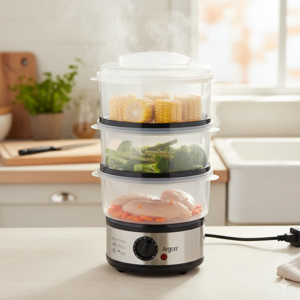 Fai della cucina sana la tua nuova abitudine! Aggiungi la Vaporiera Elettrica Multilivello Argon al tuo carrello e trasforma la tua esperienza culinaria! 🛒💖