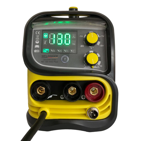 - WELDINGER ME 130 mini FLUX, inverter per saldatura a filo animato/MMA in un set con un rotolo di filo animato da 0,8 mm per ferro, punte di contatto 0,6/0,8/0,9/1,0 mm e ugello del gas filo animato